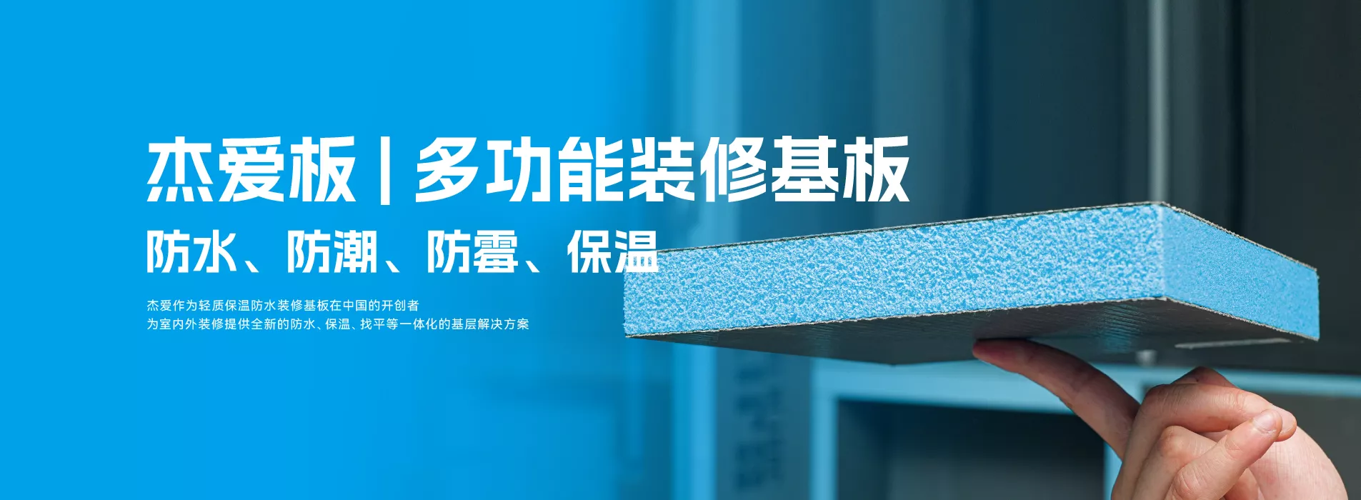 杰爱板是新型装修基层板材,它是以挤塑聚苯乙烯为核心,表面覆盖玻璃纤维网和特殊配方的高分子聚合物砂浆涂层等。杰爱板芯材以蓝色泡沫为核心是封闭的细胞单元,它不允许水的转移,同时可以阻止水蒸气的传播,耐碱性玻纤网格布增加了杰爱板的强度和刚性,表面的聚合物砂浆涂层可以与任何改性聚合物砂浆、瓷砖胶或者其它涂饰底料完全兼容。